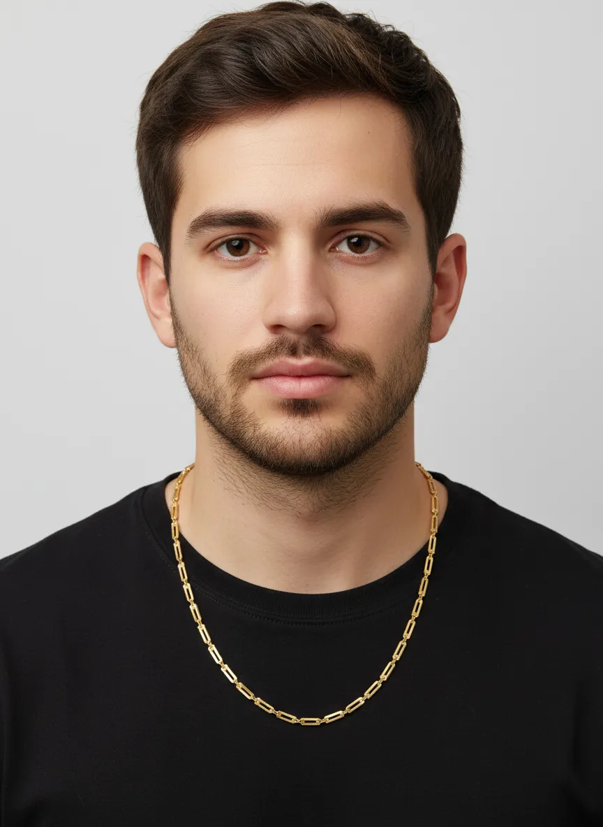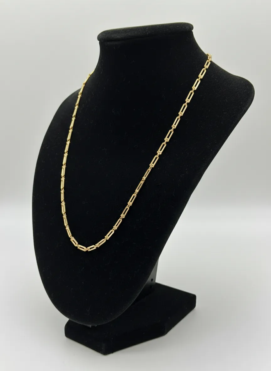 La Cadena Clip – Paperclip Chain en Oro 18K Ley 750 combina minimalismo contemporáneo con la calidad del oro auténtico. Su diseño de eslabones alargados tipo clip crea una silueta elegante, ligera y extremadamente versátil.