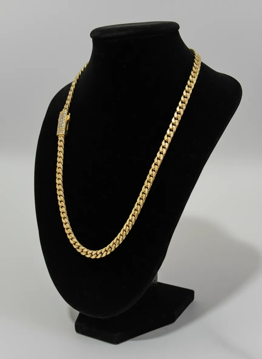 La Curb Chain o Cadena Cubana en oro 18K 750 destaca por su diseño elegante, sólido y atemporal, ideal para quienes buscan una joya con presencia y sofisticación en un formato versátil.