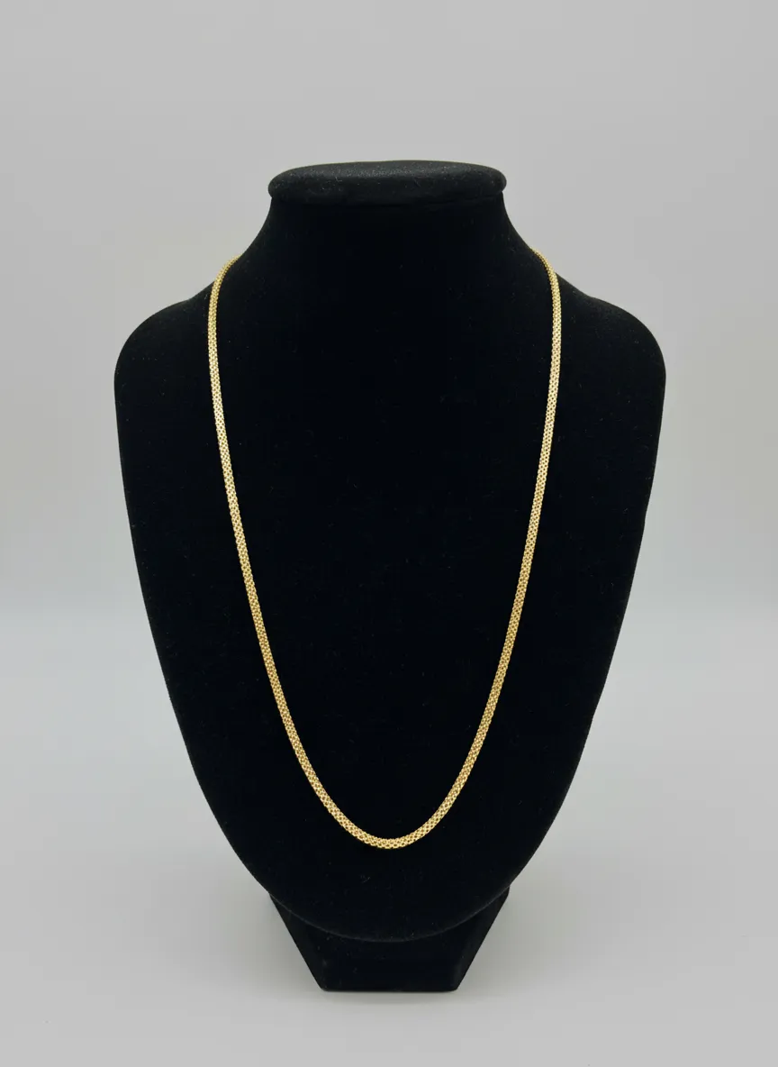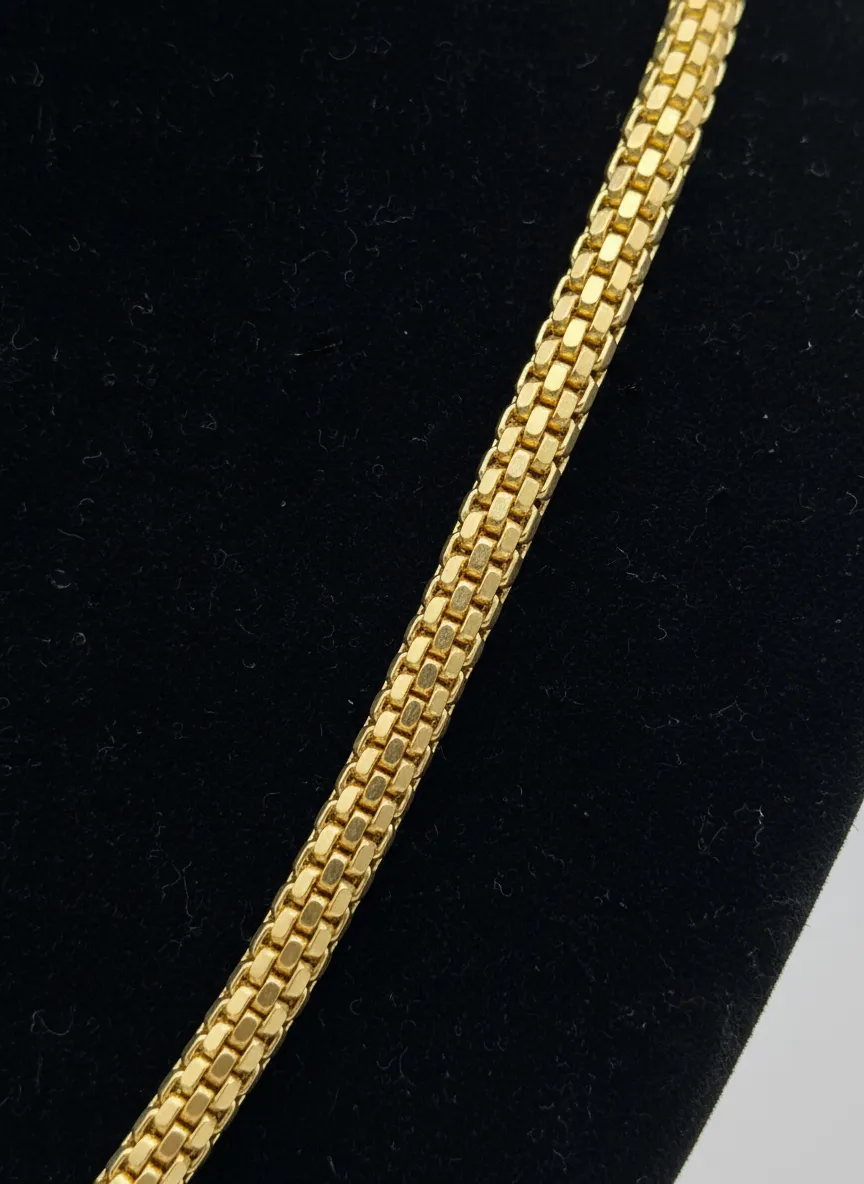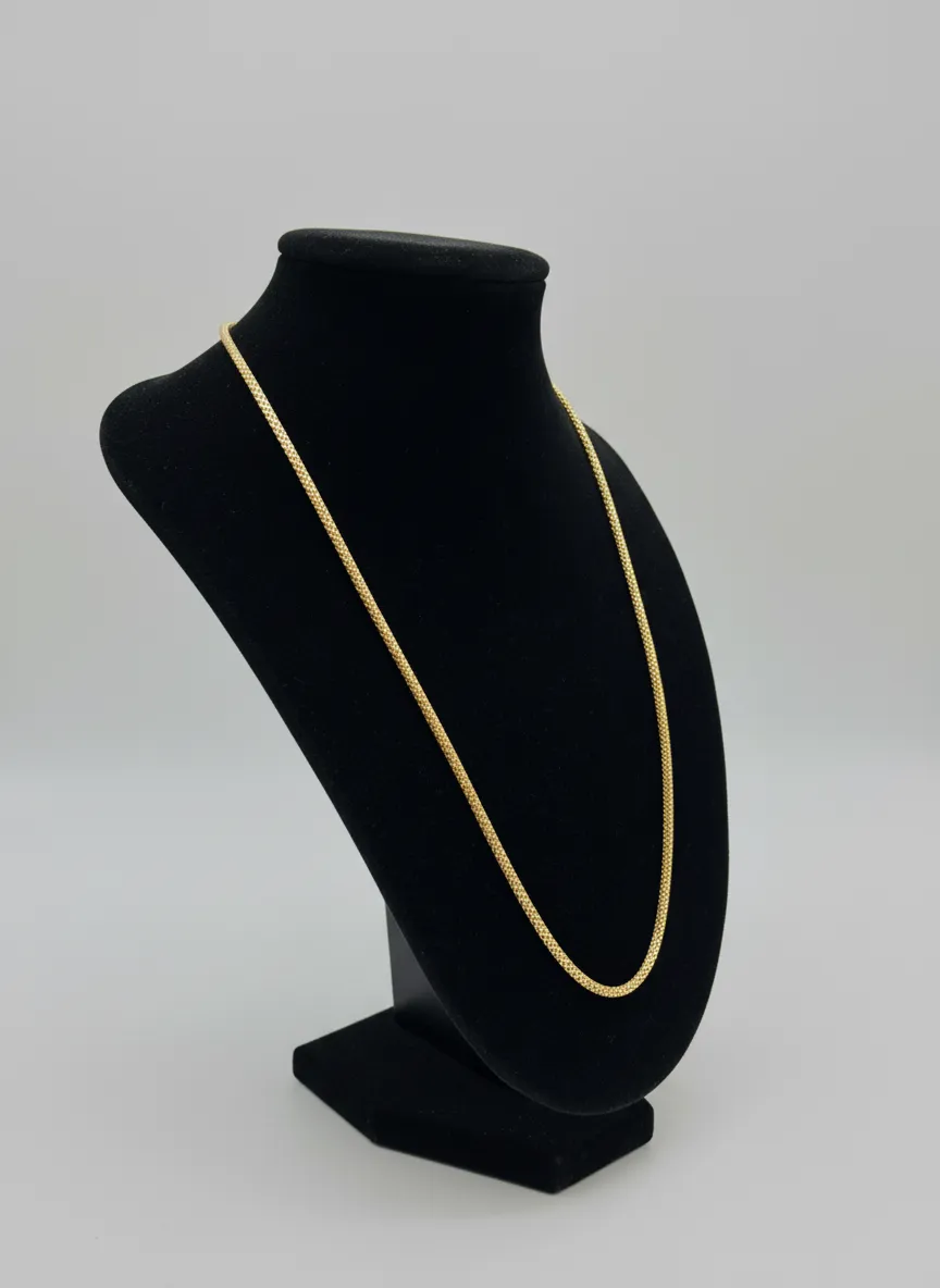 Fabricada en oro amarillo de 18 quilates (750), esta cadena combina durabilidad, resistencia y un acabado premium que la convierte en una excelente opción para uso diario o como una joya especial para regalar. El diseño Franco / Tejido Chino es altamente valorado por su apariencia estructurada, su brillo continuo y su estilo atemporal.