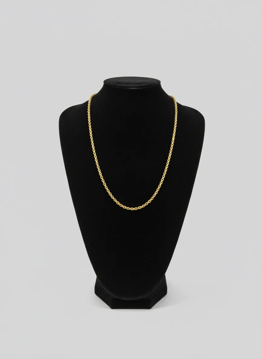 La Rolo Chain o Cadena Rolo en oro 18K 750 es una joya clásica y sofisticada que destaca por el equilibrio perfecto entre elegancia, brillo y versatilidad. Su diseño de eslabones redondeados y uniformes crea una apariencia refinada y atemporal, ideal para quienes buscan una cadena con estilo limpio, delicado y con excelente presencia visual.